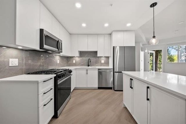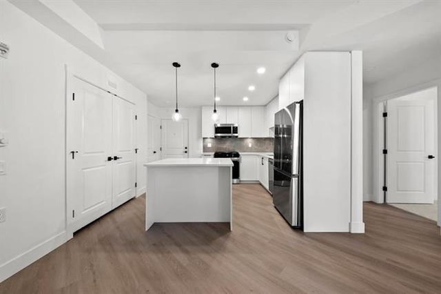 A brand new King and Crescent home, Brought to you by award winning Zenterra Developments. Located in Beautiful South Surrey. A thoughtful layout with an open Kitchen with Samsung appliances, Gas stove, quartz countertops and sleek back splash and fixtures. 9 foot ceilings in both main living area and bedrm. This unit is upgraded with A/C. The Development when complete will feature over 9700 SQFT of amenities, from private lounges, fitness centre, spin and yoga room and a guest suite for out of town guests. Easy access to King George Blvd and Highway 99. The area will soon be able to enjoy the Nicomekl Riverfront Park, offering nearly 3 km of scenic riverfront, coming soon!