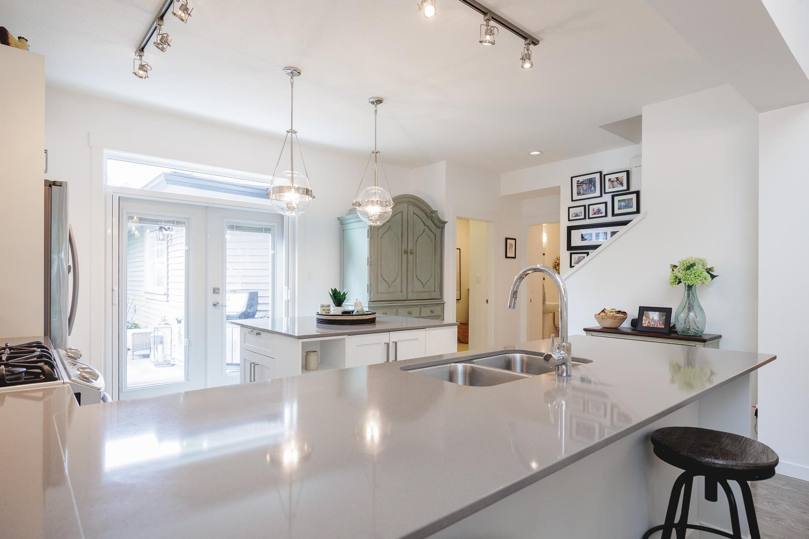 Hard to find, master on the main with a full-size double garage and driveway! This home offers 2 additional spacious bedrooms upstairs, perfect for family or guests. As you enter, you’ll be greeted by stunning vaulted ceilings in the living area, creating an airy and inviting atmosphere. The open-concept kitchen is a chef’s delight, showcasing a large island that provides ample space for meal preparation and casual dining. With a south-exposed yard you can enjoy sunshine on your patio most of the day. Situated conveniently close to the new SkyTrain line, you’ll have easy access to public transportation and the surrounding amenities. Don’t miss this opportunity to own a wonderful townhouse in a thriving community.