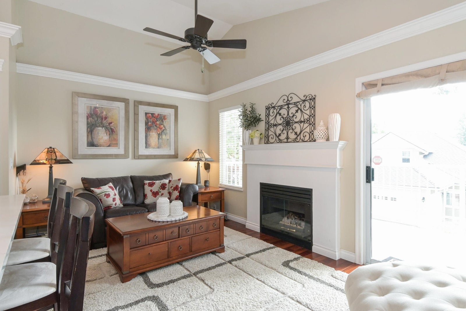 STONECROFT - Stunning END UNIT Rancher w/ basement boasting nearly 2,600 sqft of thoughtfully designed living space in a gated 55+ community. Oversized windows & vaulted ceilings flood the home with natural light, creating a bright & welcoming atmosphere. With 4 bedrooms & 3 full baths, there's room for everyone! The Primary Bdrm w/ 5 pc. ensuite & walk-in closet is conveniently located on the main level. Beautifully updated kitchen, spacious living/dining area, guest bed & 2nd full bath. The daylight walkout basement expands your living space with 2 additional beds + den, opening to one of the largest private backyards in the complex - perfect for entertaining or simply relaxing outdoors. Enjoy modern touches like updated lighting, air conditioning, & two cozy gas fireplaces. Don't wait!
