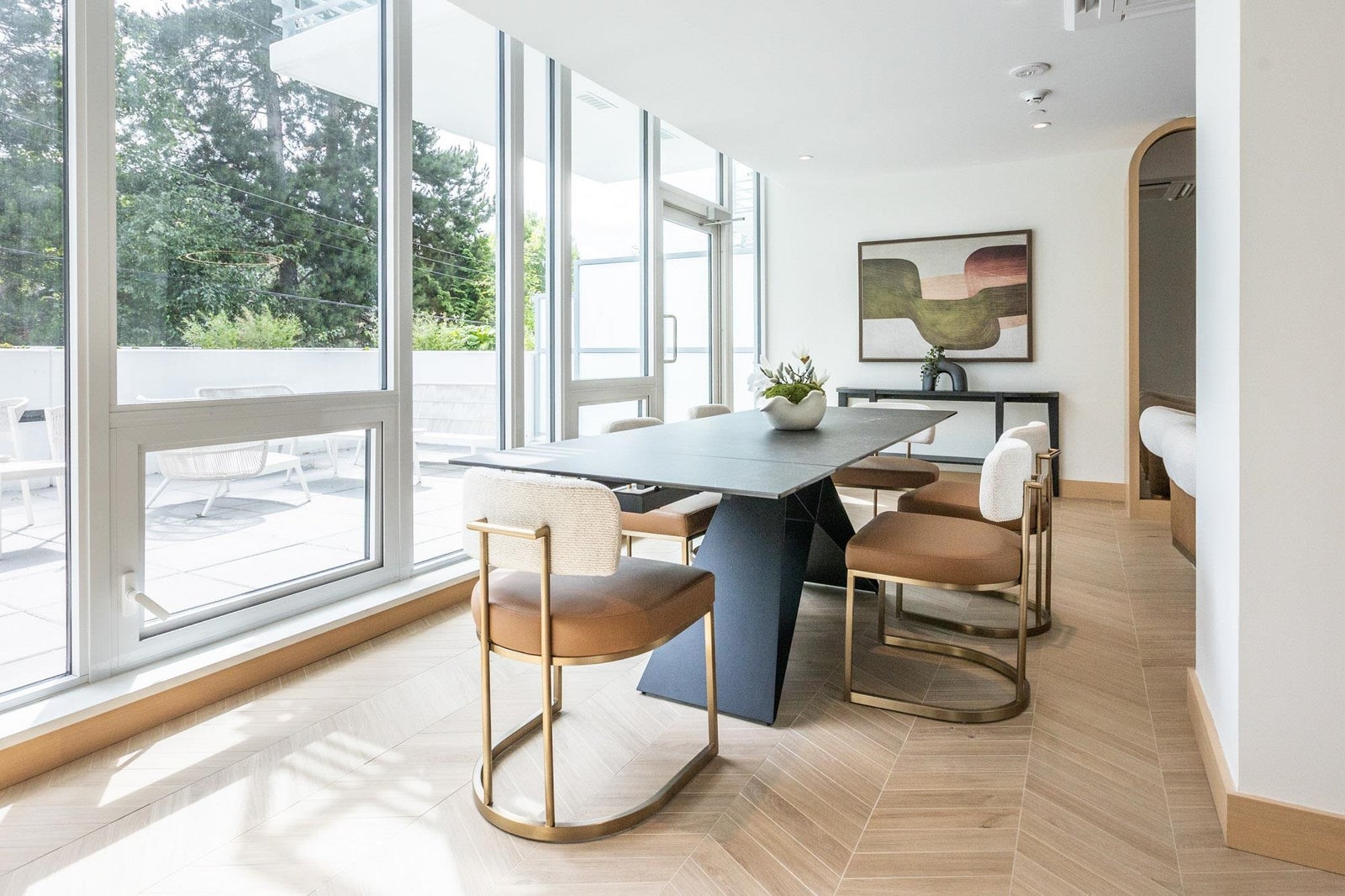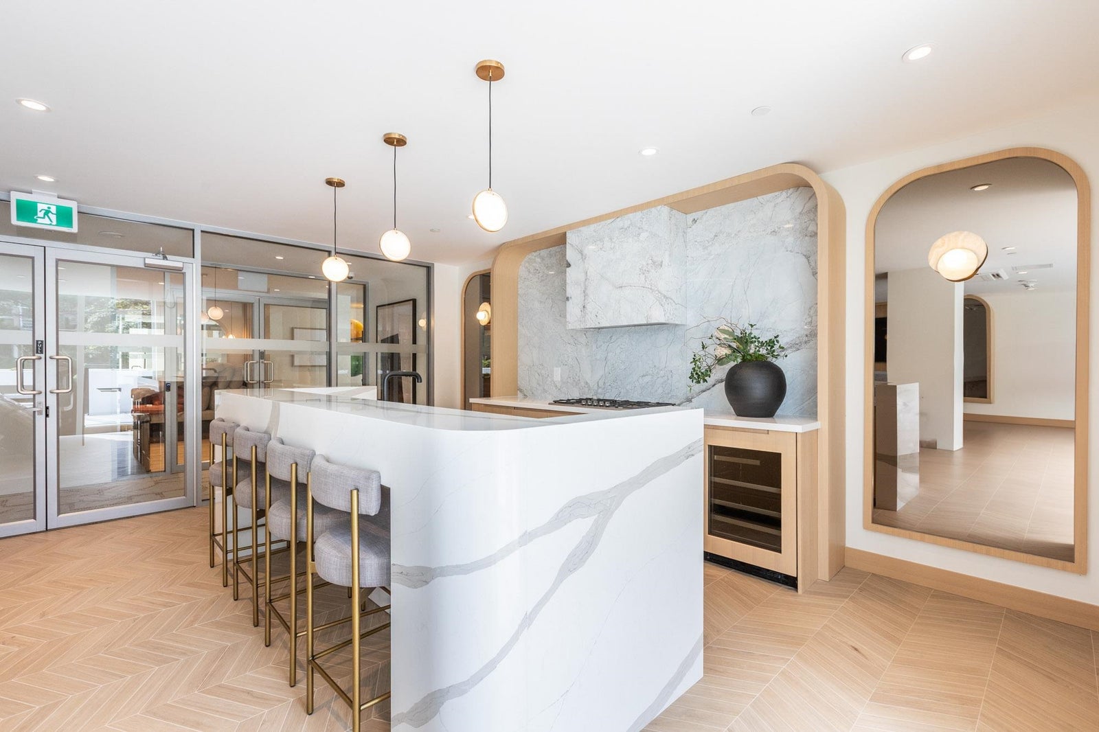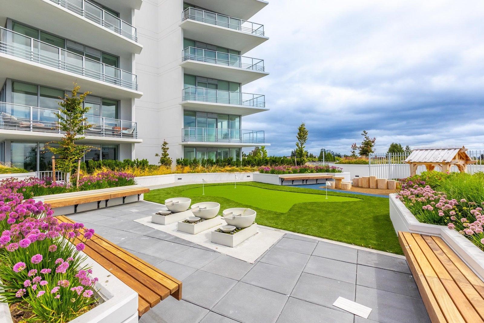 Monaco, White Rock's newest and most prestigious high rise. Ocean View home has it all from 18' gourmet kitchen featuring Thermador. Built in appliances from the fridge, cooktop, wine fridge, microwave, and oven. Cabinets feature pull outs everywhere. Master suite is large with massive closet space and more built ins. Ensuite is tiled to the ceiling, recessed mirrors, shelving, bidet, and heated floors. Flex space could be set up as a dining room or 3rd bedroom. Secondary bedroom is bright large and has loads of closet space. 2 Parking spaces (one with EV roughed in) storage locker. Air conditioned and ready to move in. There are 2 common social areas for entertaining a complete lounge area with kitchen and a 5th floor outdoor oasis including BBQ and Panoramic Views. Awesome gym as well.