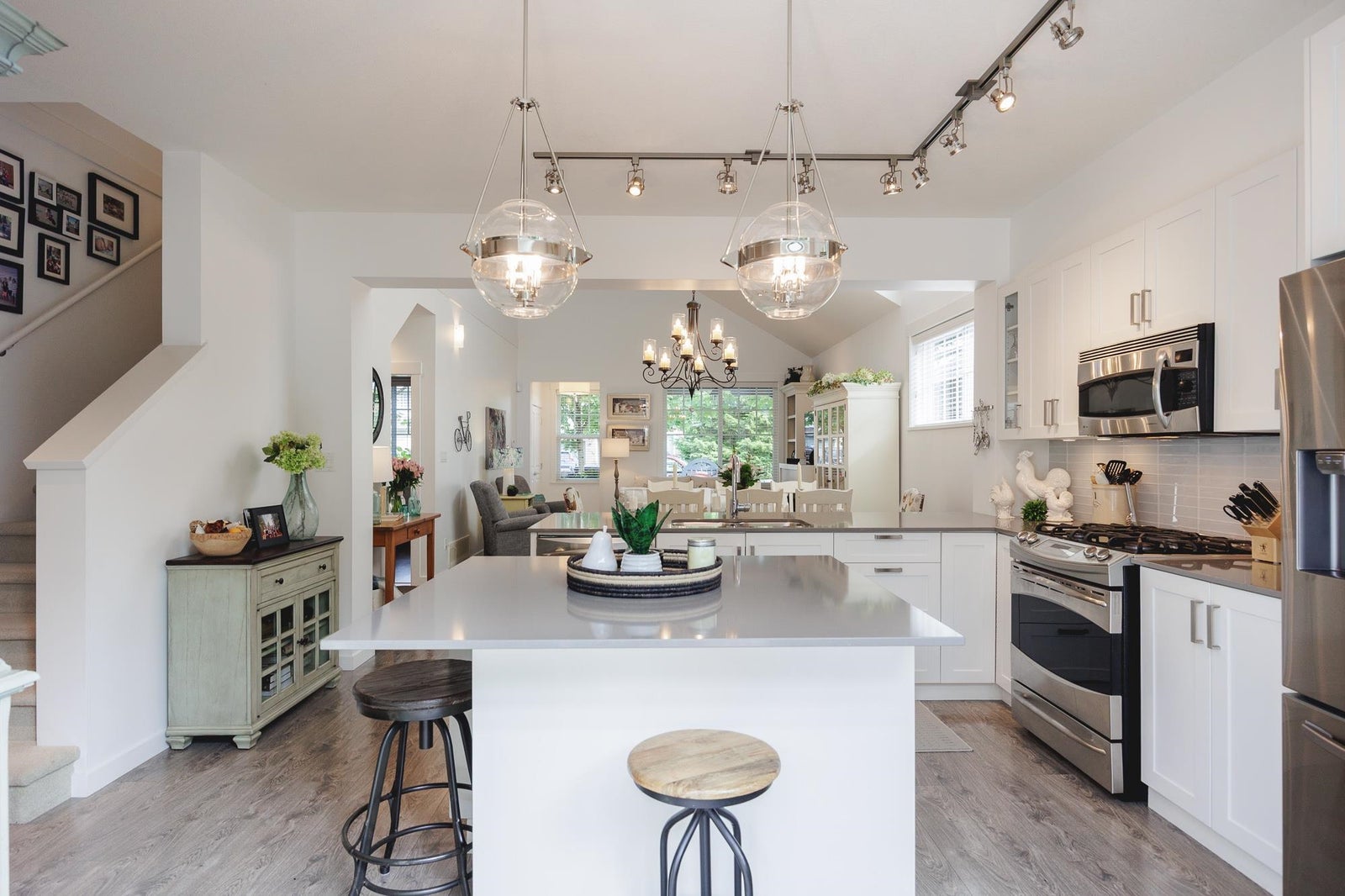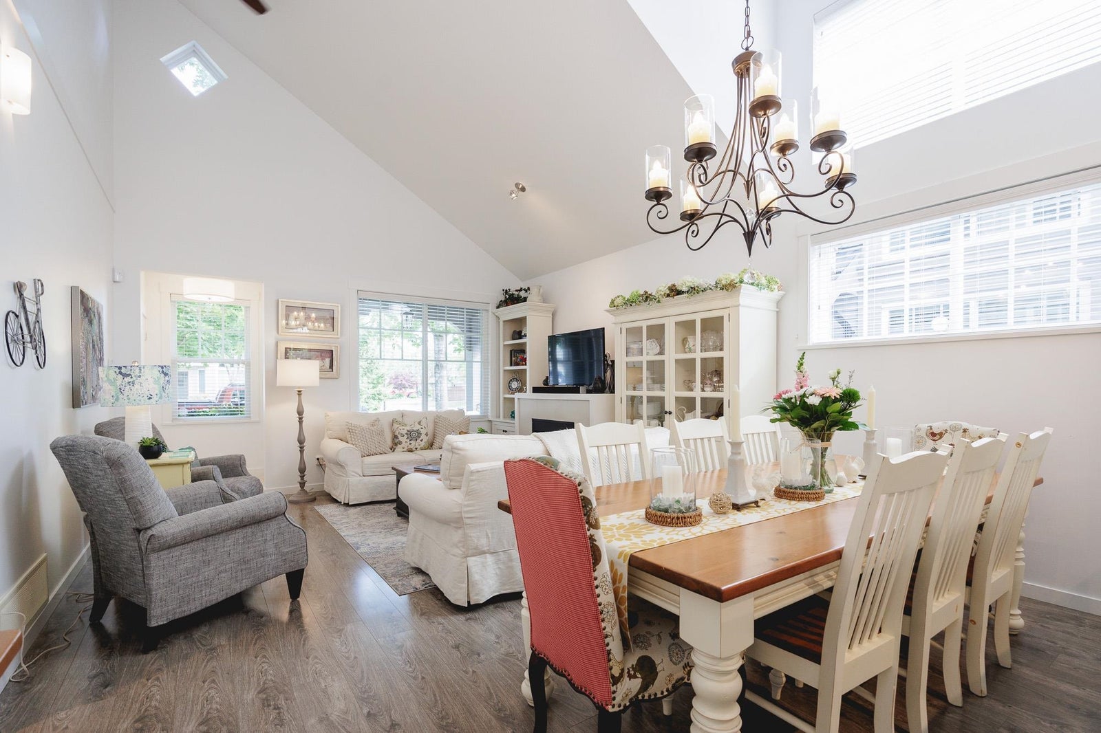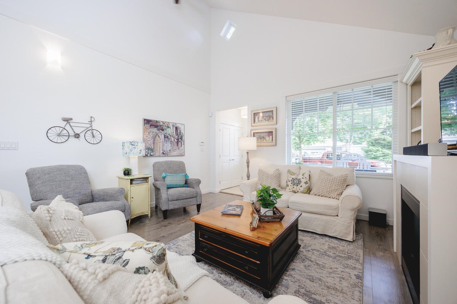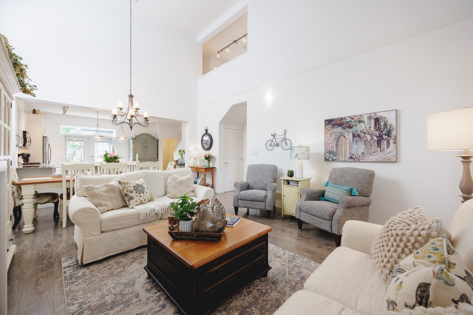 Hard to find, PRIMARY ON THE MAIN with a full-size double garage and driveway ONLY 13 YEARS OLD! This home offers 2 additional spacious bedrooms upstairs, perfect for family or guests. As you enter, you’ll be greeted by stunning vaulted ceilings in the living area, creating an airy and inviting atmosphere. The open-concept kitchen is a chef’s delight, showcasing a large island that provides ample space for meal preparation and casual dining. With a south-exposed yard you can enjoy sunshine on your patio most of the day. Situated conveniently close to the new SkyTrain line, you’ll have easy access to public transportation and the surrounding amenities. Don’t miss this opportunity to own a wonderful townhouse in a thriving community.