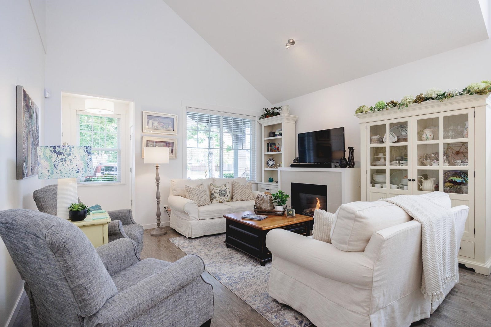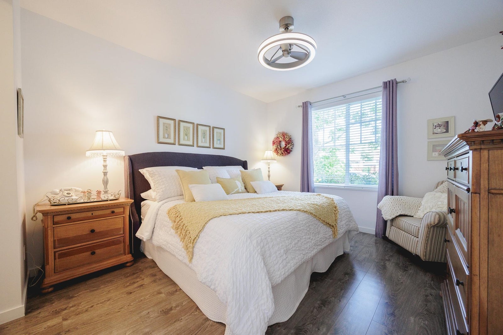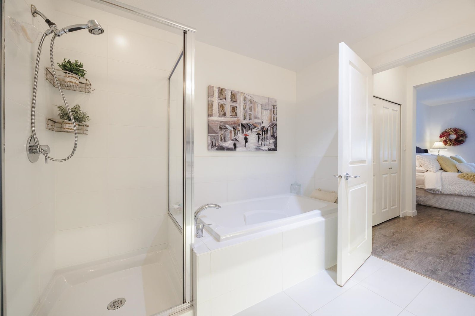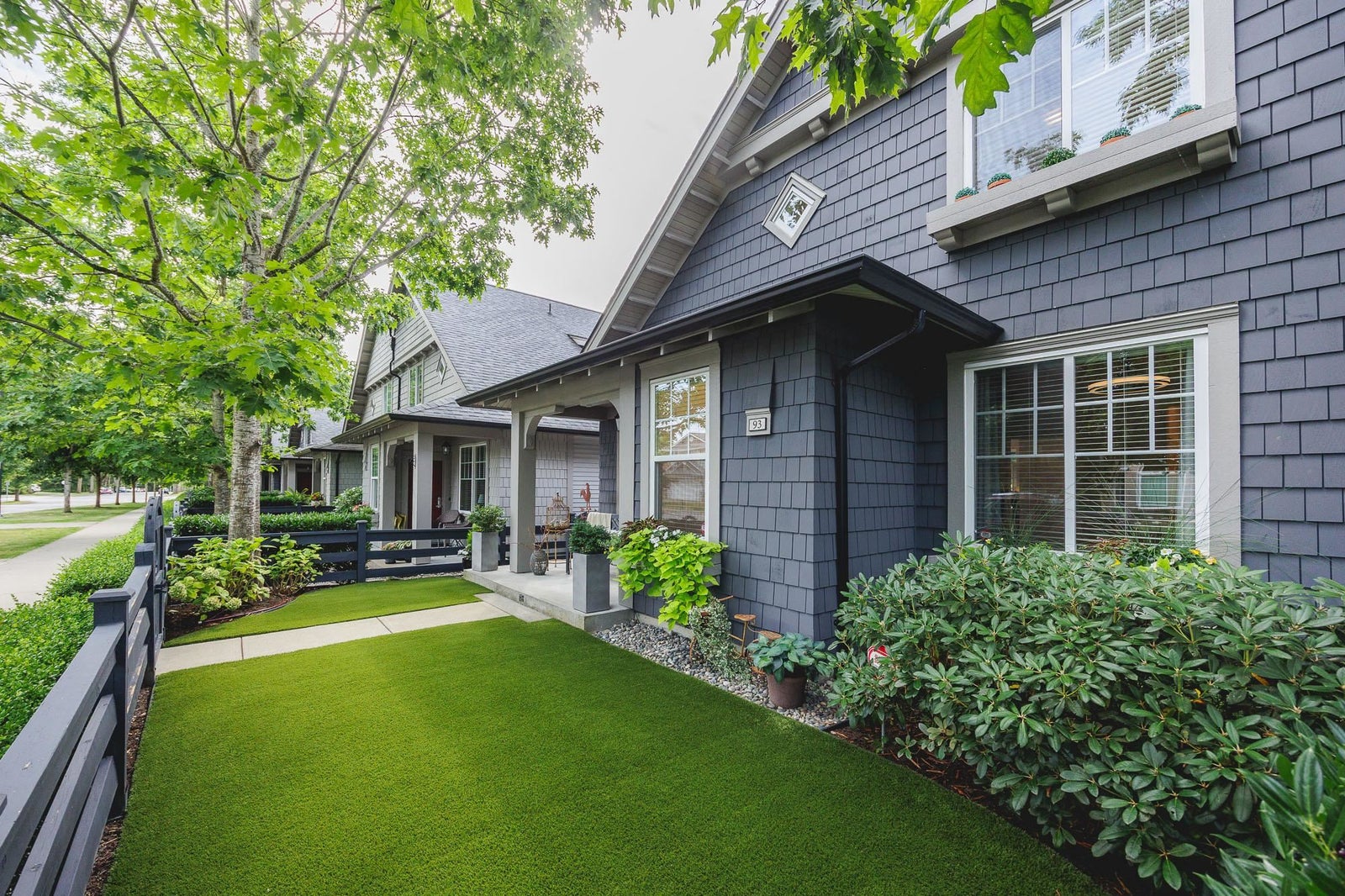 Hard to find, PRIMARY ON THE MAIN with a full-size double garage and driveway ONLY 13 YEARS OLD! This home offers 2 additional spacious bedrooms upstairs, perfect for family or guests. As you enter, you’ll be greeted by stunning vaulted ceilings in the living area, creating an airy and inviting atmosphere. The open-concept kitchen is a chef’s delight, showcasing a large island that provides ample space for meal preparation and casual dining. With a south-exposed yard you can enjoy sunshine on your patio most of the day. Situated conveniently close to the new SkyTrain line, you’ll have easy access to public transportation and the surrounding amenities. Don’t miss this opportunity to own a wonderful townhouse in a thriving community.