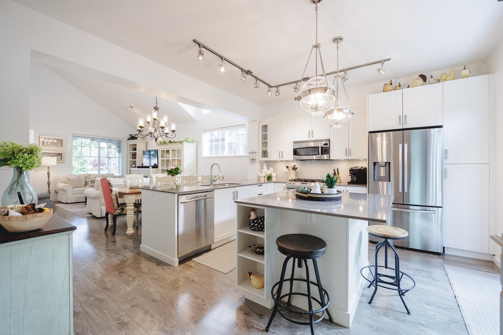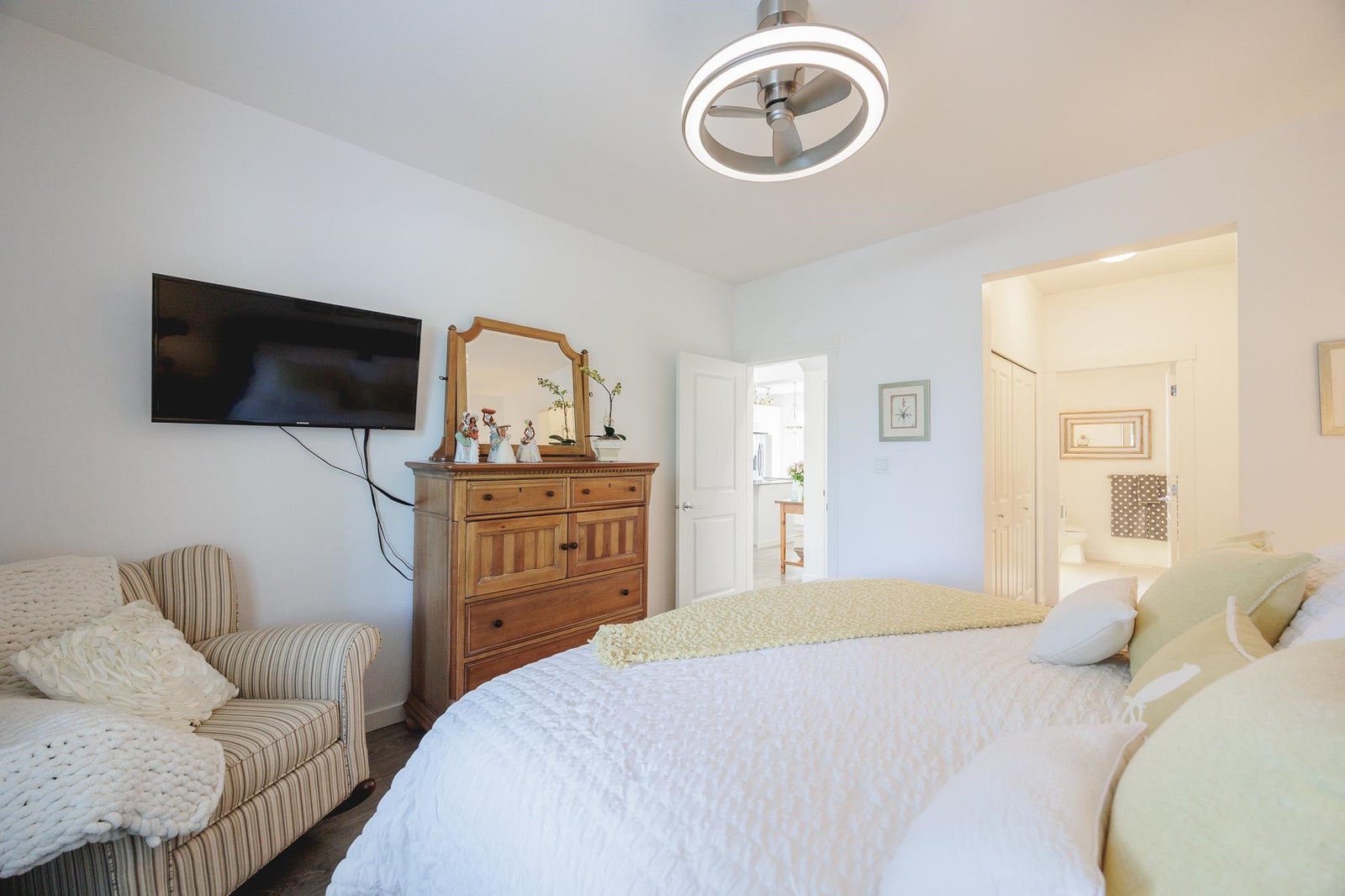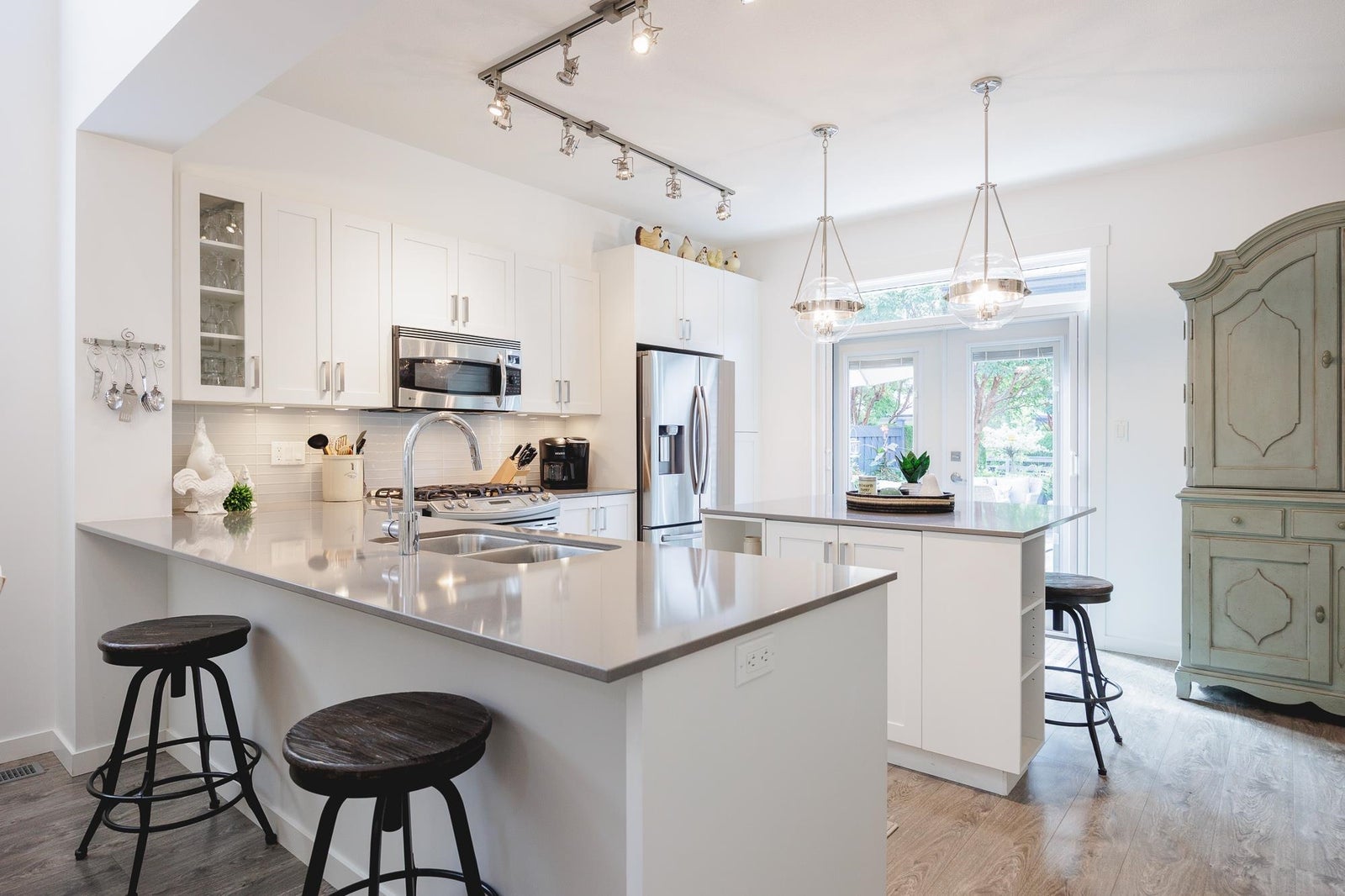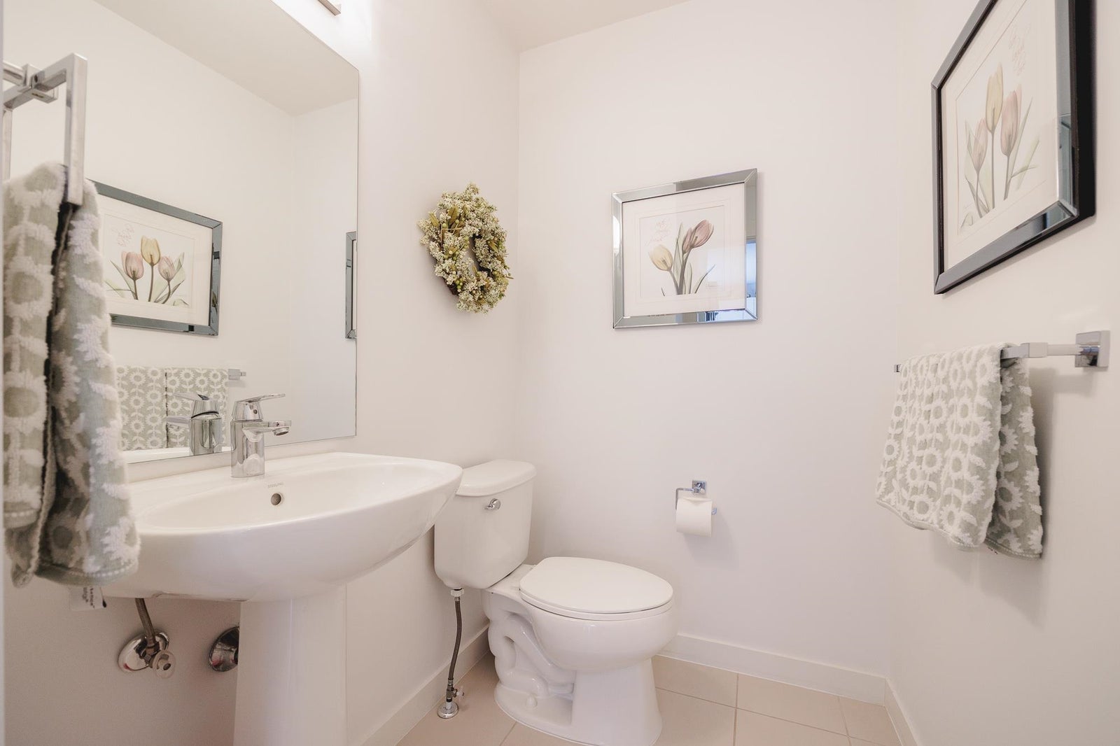 Hard to find, PRIMARY ON THE MAIN with a full-size double garage and driveway ONLY 13 YEARS OLD! This home offers 2 additional spacious bedrooms upstairs, perfect for family or guests. As you enter, you’ll be greeted by stunning vaulted ceilings in the living area, creating an airy and inviting atmosphere. The open-concept kitchen is a chef’s delight, showcasing a large island that provides ample space for meal preparation and casual dining. With a south-exposed yard you can enjoy sunshine on your patio most of the day. Situated conveniently close to the new SkyTrain line, you’ll have easy access to public transportation and the surrounding amenities. Don’t miss this opportunity to own a wonderful townhouse in a thriving community.